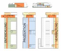 | IT-PARK IN FELDKIRCHEN _ DIPLOMARBEIT | Ein Unternehmen der High-Tech-Branche beabsichtigt einen Neubau mit drei in ihren Ansprüchen unterschiedlichste Funktionsbereiche - Entwicklung, Produktion und Verwaltung - zu errichten. Vorallem die Verknüpfungen innerhalb und zwischen den Bereichen, zusammen mit hohen Ansprüchen der Zugangssicherheit intern und extern, stellt einen Schwerpunkt der Arbeit dar. Im langgestreckten Hauptgebäude befinden sich, verknüft und auf die jeweils individuellen Bedürfnisse eingehend, die verschiedenen Funktionsbereiche. Im Westen ist durch die semitransparente Photovoltaik-Fassade der hochsensible Entwicklungsbereich vor ungewollten Blicken geschützt. Die bogenförmige Stahl-Glas-Fassade im Osten erstreckt sich über alle Geschosse und versorgt alle Funktionsbereiche mit Tageslicht. Die klare Gliederung der Fertigungshallen und die zentrale Stellung des Lagers machen einen problemlosen Warenfluss möglich. Das gesamte Gebäude ist in all seinen Bereichen problemlos um 50% zu erweitern ohne den Produktionsablauf zu stören.